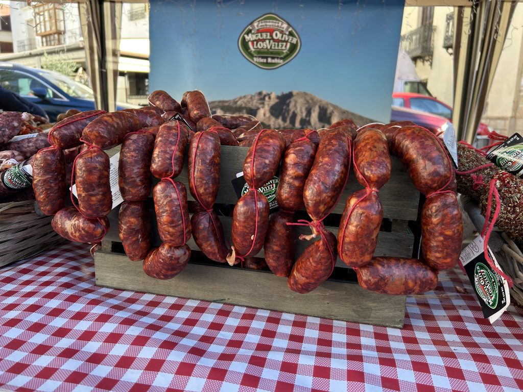 Chorizo casero tradicional de Velez-Rubio en el mercadillo navideño de la localidad.