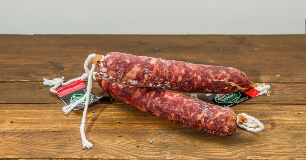 Embutido característico de la Comarca de Los Vélez realizado con magro de cerdos especialmente seleccionados, tocino y especias naturales. Es curado durante 60 días de manera totalmente natural al aire de la Sierra María, aprovechando las características climáticas de la zona.