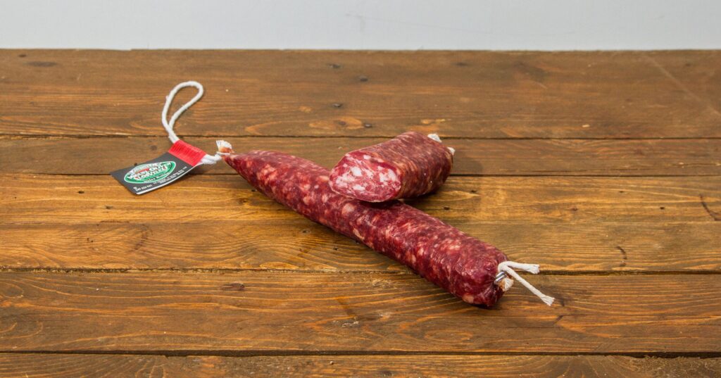 El salchichón prensado es un embutido artesano elaborado a base de carne magra de cerdo, especias naturales y una porción de panceta. Todo ello introducido de manera tradicional en tripa “roscal” y curado de manera natural en plena Sierra de María durante 30 días.